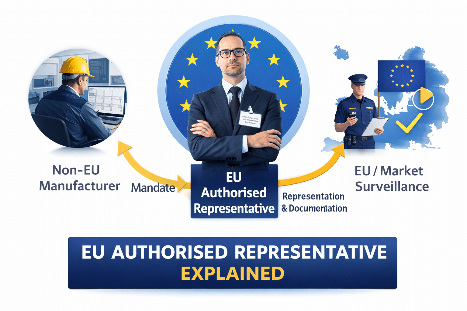 An EU Authorised Representative is a natural or legal person established within the European Union who has received a written mandate from a manufacturer to act on their behalf in specific compliance-related matters.