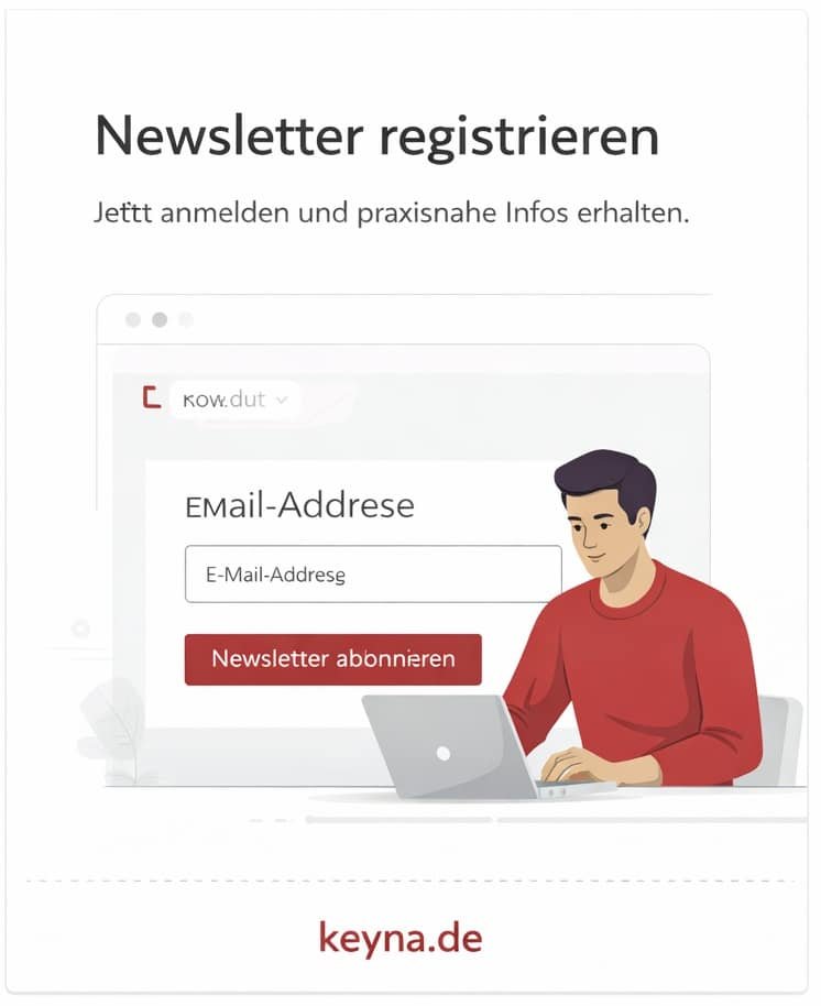Mit Absenden des Formulars (ABONNIEREN) für den Newsletter bestätigen Sie, dass Sie die Datenschutzerklärung gelesen und akzeptiert haben. Sie sind damit einverstanden, dass keyna group mir per E-Mail Werbung zu Produkten, Dienstleistungen, Aktionen, Zufriedenheitsbefragungen und Vorteilen von keyna group, anderen Unternehmen der keyna group und keyna group-Partnerunternehmen zusendet. Zu diesem Zweck verarbeitet keyna group meine personenbezogenen Daten, wie in den Datenschutzhinweisen beschrieben. Diese Einwilligung kann ich jederzeit mit Wirkung für die Zukunft widerrufen, z.B. per Abmeldelink am Ende eines jeden Newsletters. Ich verwende Ihre Daten nur gemäß der aktuellen Datenschutzrichtlinie DSGVO (hier klicken). Wir verwenden Mailchimp als unsere Marketingplattform. Wenn Sie ANMELDEN oben klicken, bestätigen Sie, dass Ihre Daten zur Verarbeitung an Mailjet übertragen werden. Der Versand der Newsletter erfolgt über Mailjet. Die E-Mail-Adressen werden ausschließlich zum Newsletter-Versand verwendet und nicht an Dritte weitergegeben. Weitere Informationen finde ich in der Datenschutzerklärung.