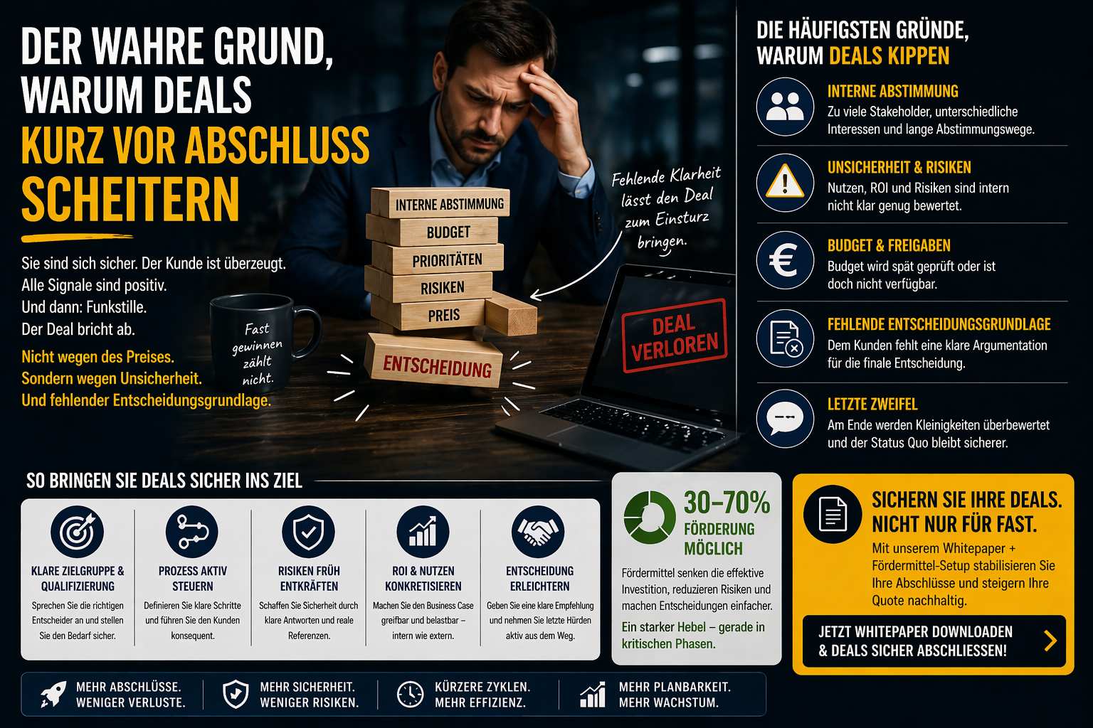 Deals scheitern nicht am Ende – sie scheitern an fehlender Struktur im gesamten Prozess. Der Abschluss ist nur der Moment, in dem sich diese Schwächen zeigen.