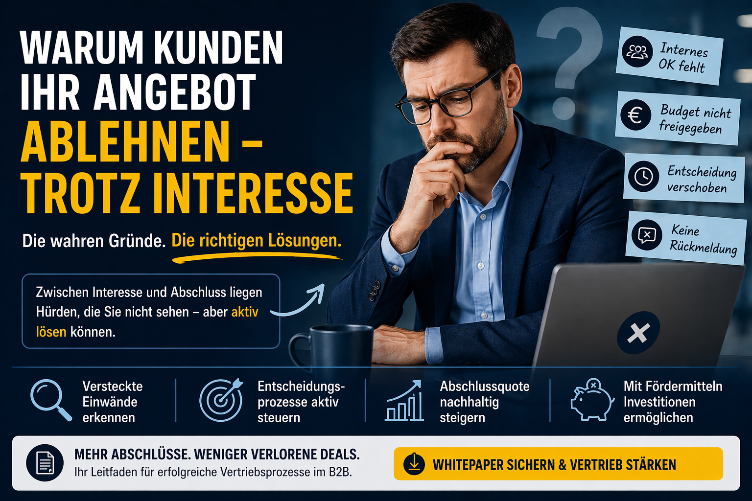 Viele Deals scheitern nicht im ersten Gespräch, nicht in der Demo und auch nicht am Angebot selbst. Im Gegenteil: Der Kunde zeigt Interesse, stellt Fragen, wirkt überzeugt – und lehnt am Ende trotzdem ab oder verschwindet komplett. Genau dieser Punkt wird im Vertrieb regelmäßig falsch interpretiert. Interesse wird mit Kaufbereitschaft gleichgesetzt. Doch im B2B ist das ein gefährlicher Denkfehler. Zwischen „interessiert“ und „entscheidet sich“ liegt ein komplexer Prozess aus Budget, interner Abstimmung, Risikoabwägung und Priorisierung. Wer diesen Prozess nicht aktiv steuert, verliert Deals – obwohl eigentlich alles gepasst hat.
