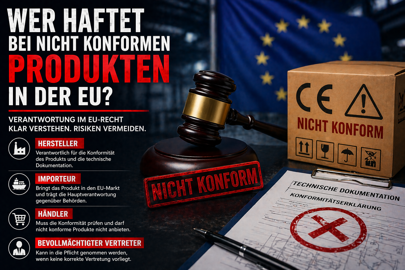 Die Haftung bei nicht konformen Produkten folgt in der EU einer klaren Struktur. Sie orientiert sich nicht an der Ursache, sondern an der Rolle im Markt.
